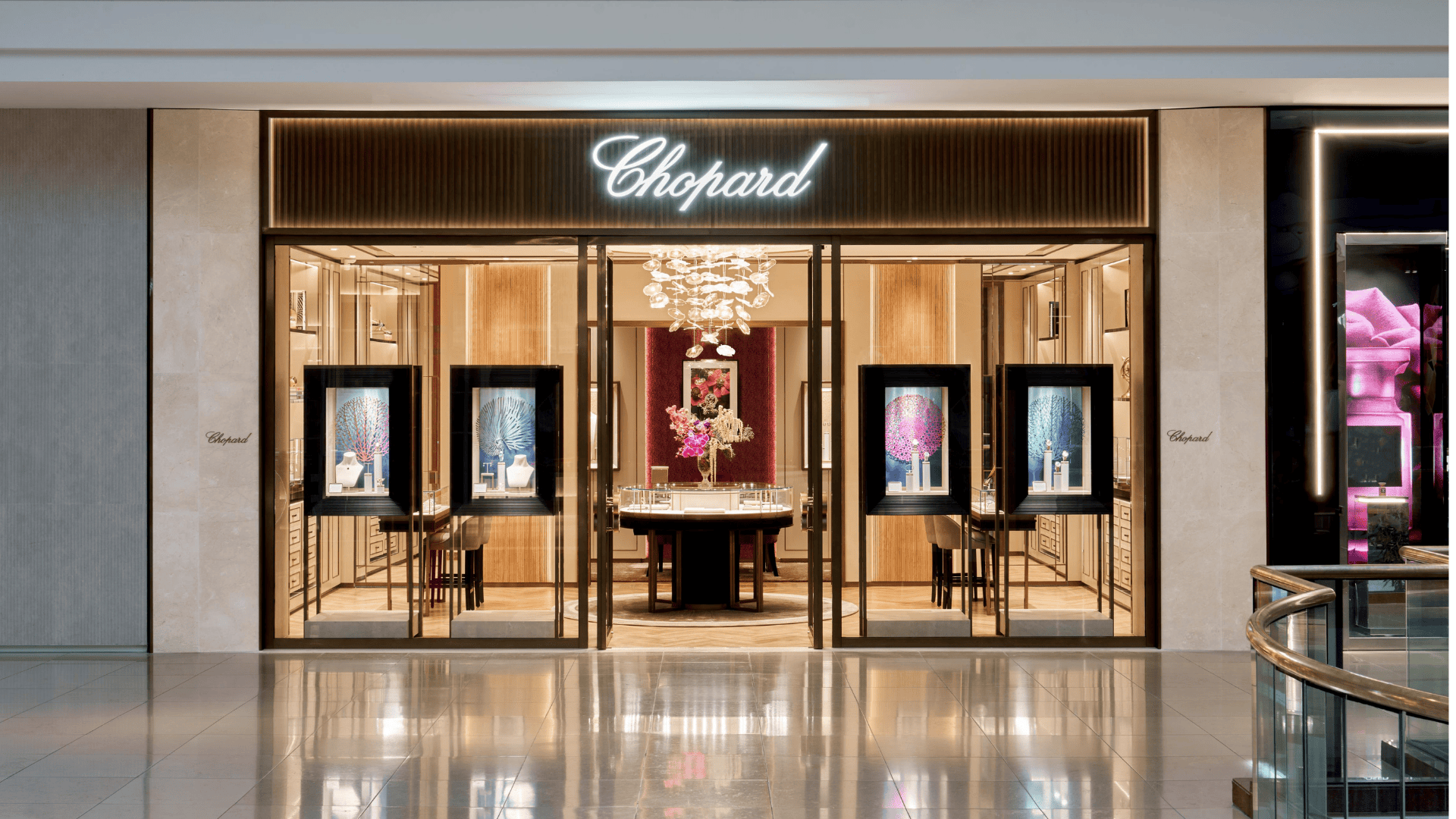 The space houses Chopard’s signature collections — Happy Diamonds, Alpine Eagle, L.U.C and Haute Joaillerie.