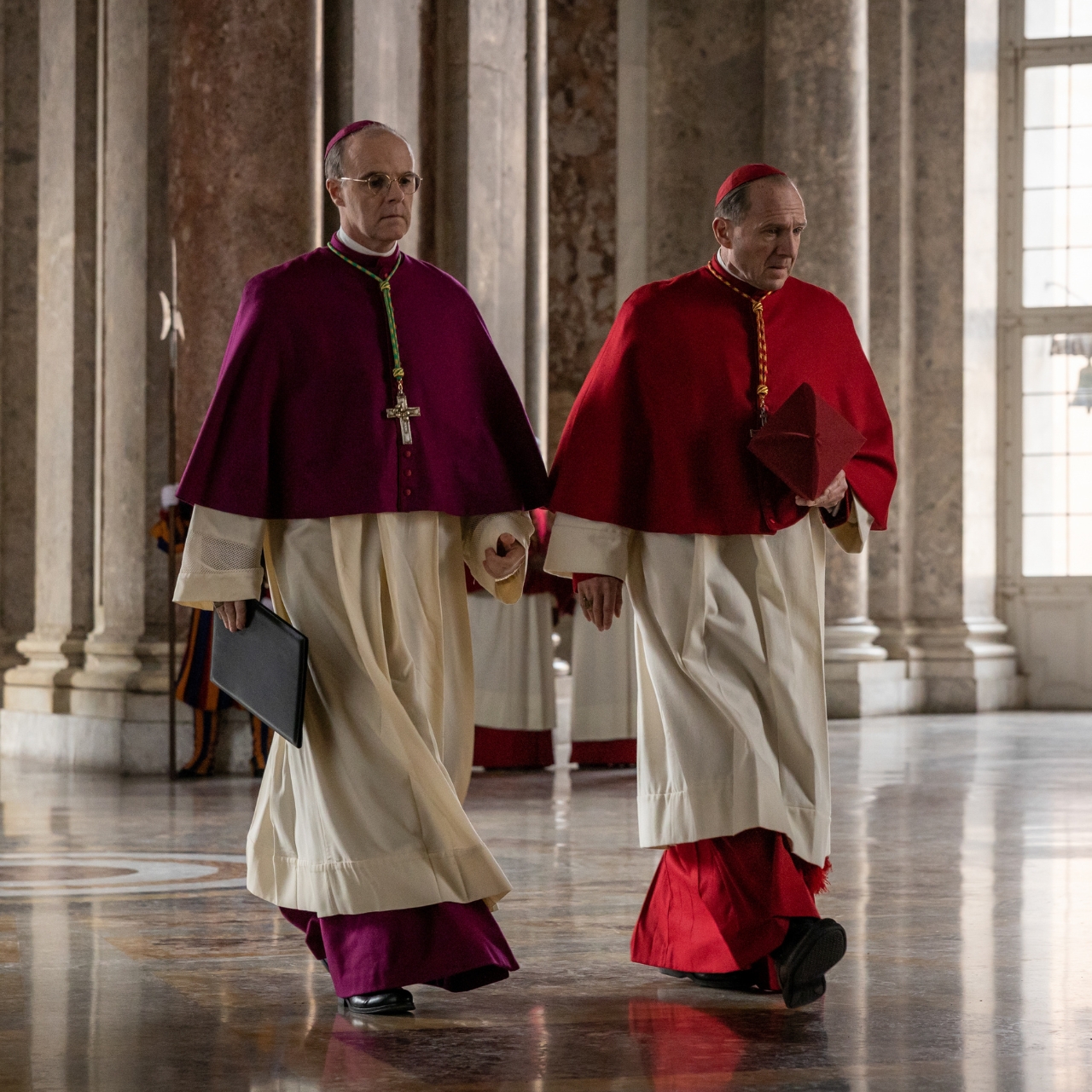 EDWARD BERGER’S new film Conclave opens with the death of the pope, but it really begins when the cardinals arrive in Vatican City. They’re in town for conclave, the ‘Pope Idol’ process of electing a new pope. In the Casa Santa Marta courtyard, shot from above, cardinals from across the Catholic world are mingling: a trio huddle as they spark cigarettes, a cardinal greets another with open arms like a mafia don. But the players you need to know, the ones vying for the papacy with varying degrees of ambition and ardour? They’re all wearing really cool coats.