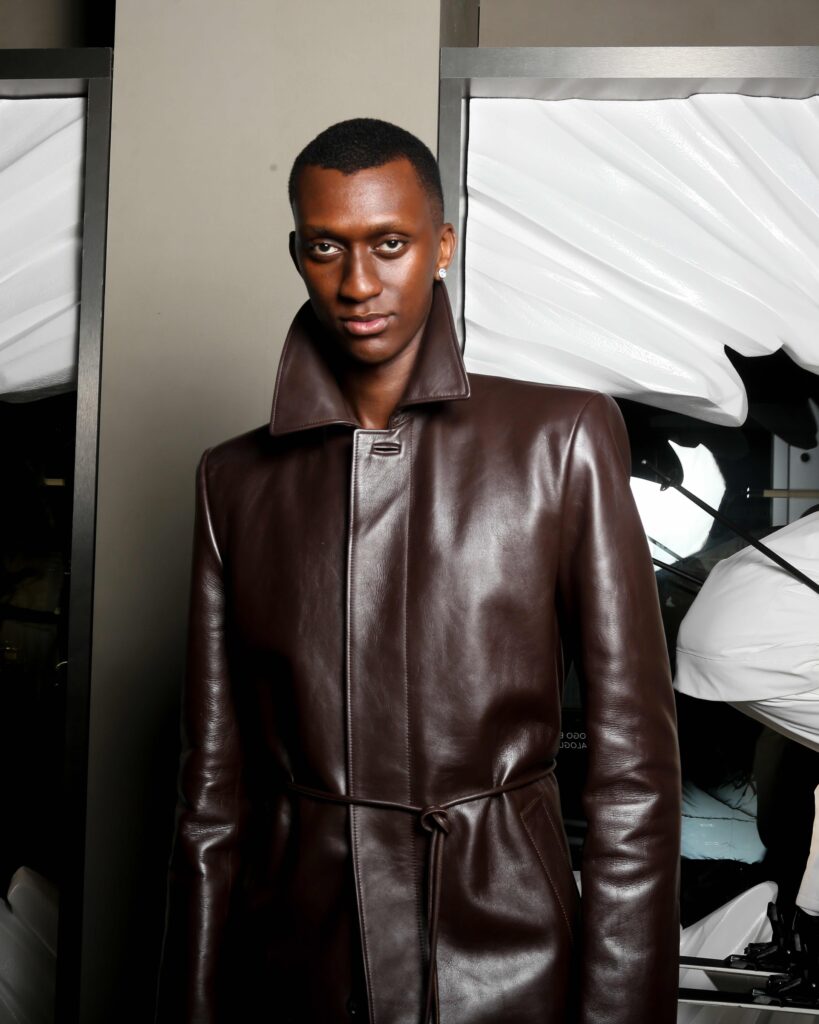 Among the Milanese A-list in attendance, the house’s codes were subtly on display. The clothes suggested a refined take on sporting elegance, with relaxed tailoring, double-breasted jackets worn with ease, crisp white tees cutting through black suiting, and leather and shearling adding weight and texture. The result felt quietly confident, a reminder that some of fashion’s most compelling moments arrive well before the main event.