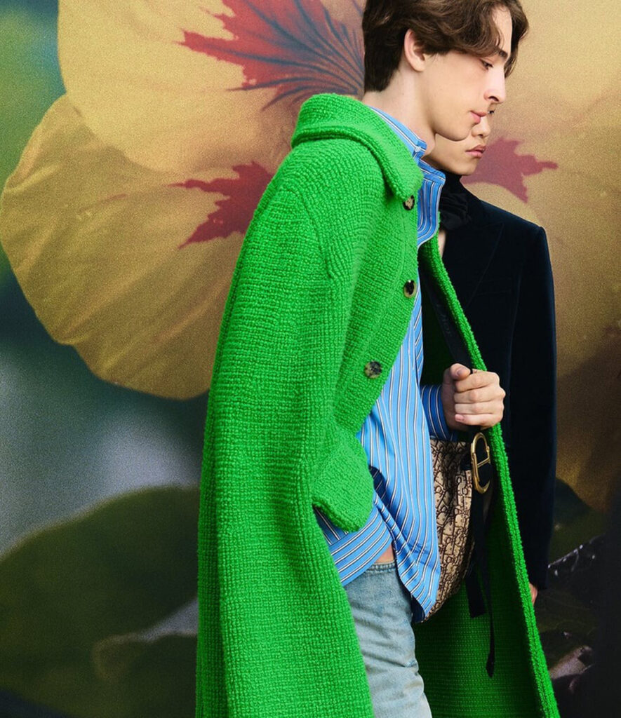 His debut show gave some insight into this vision. His playful approach to blurring structural tailoring and frivolity, the Baroque colour palette and silhouettes, Anderson pivoted Dior into a modern fantasy. This was quickly played out on social media and red carpets – approach to design has always been an immersive one – where the narrative of the runway was expanded into a theatre of Dior ambassadors.