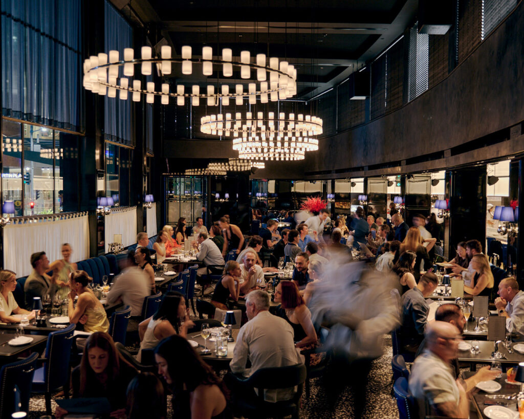 While Grill Americano Melbourne established the DNA – plush navy upholstery, halo chandeliers, white-jacket service – Sydney was never intended as a replica. “I really wanted this restaurant to feel like it has its own identity… while the brand cements certain elements, like the plush navy design or iconic halo chandeliers, the end result here is definitely a lighter, breezier interpretation.”