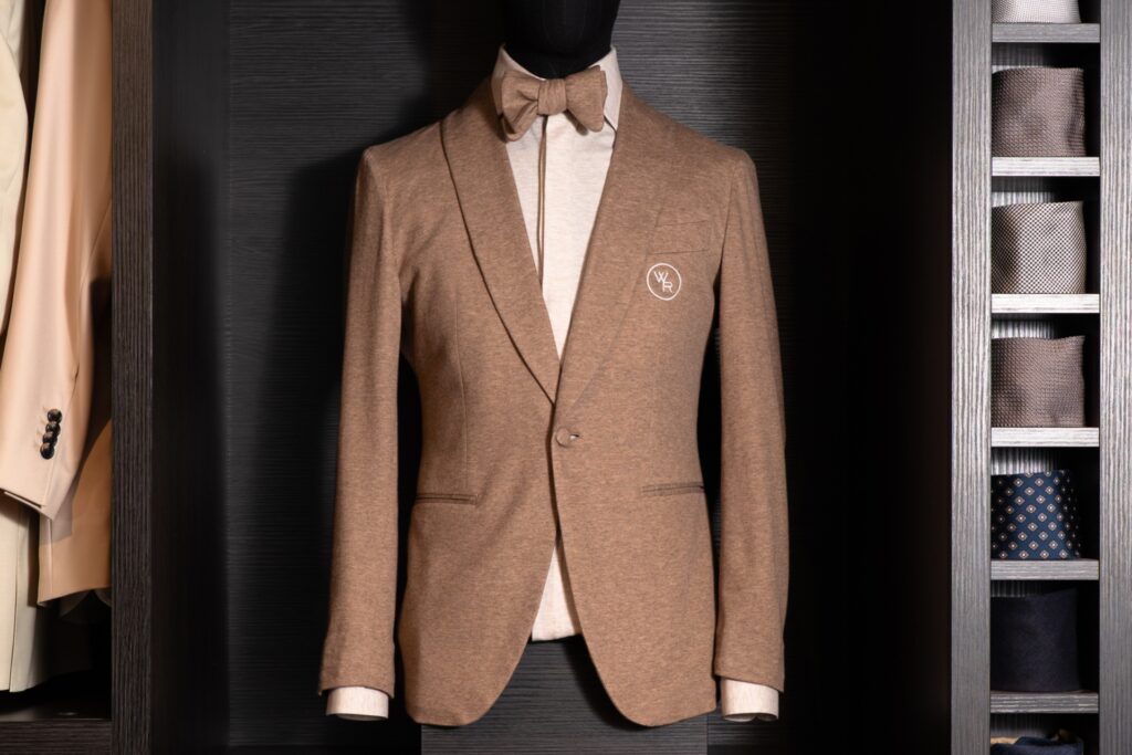 “The traxedo is a one-of-a-kind piece we’ve never attempted before,” says Wharton, “blending the precision of bespoke tailoring with the ease of loungewear.”