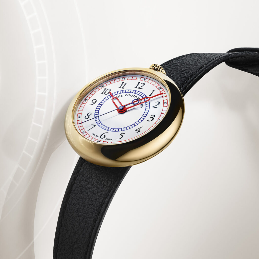 The new edition refines this audacity. It also comes at a point in time when audiences are craving archive designs for their authenticity and originality. Case proportions have been subtly reworked so the pebble form never feels bulky, while the Grand Feu enamel, notoriously volatile in the kiln, underscores La Fabrique du Temps’ confidence in craft. Even those red and blue scales do more than echo history; they gesture toward Vuitton’s own graphic language, where fashion and horology share the same aesthetic grammar. In wearing one, you carry both the defiance of the 1980s and the precision of contemporary savoir-faire, a rare equilibrium rendered in gold and glaze.
