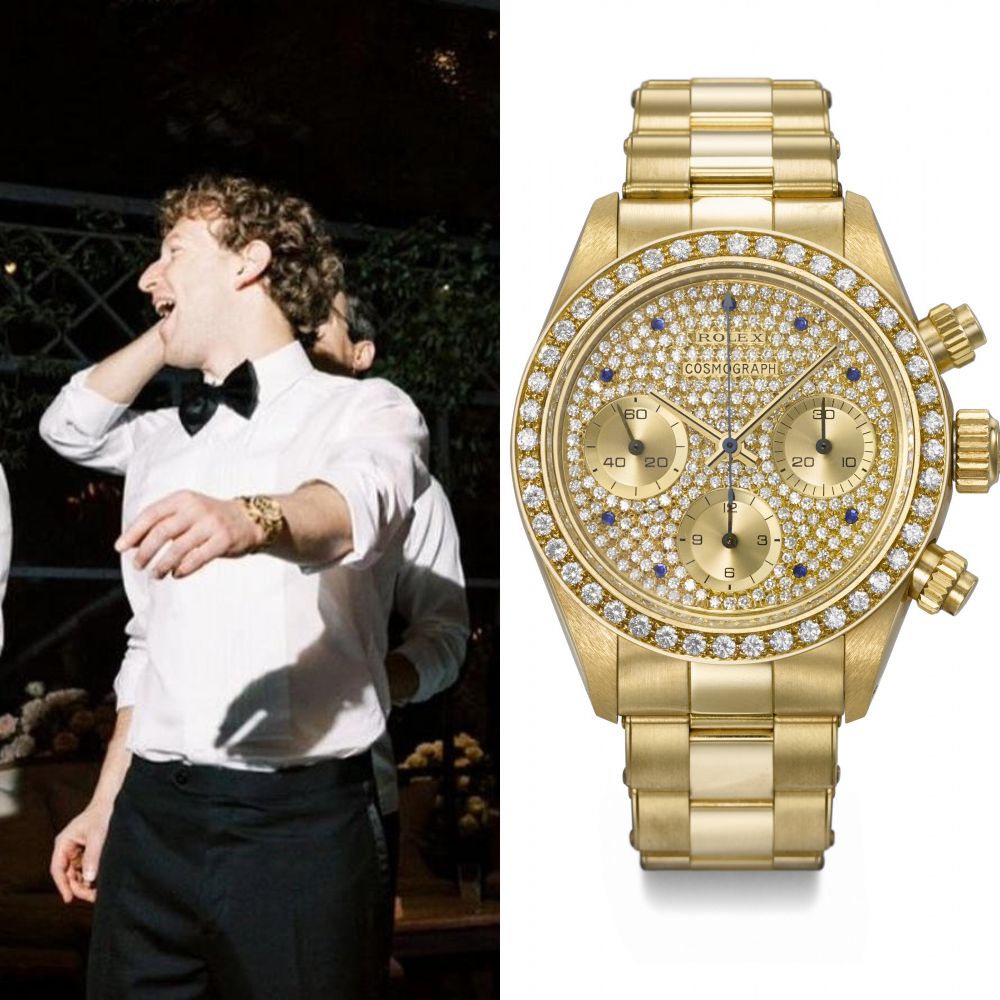 Of the more pleasant timepieces owned by Zuckerberg, standouts include a more subtle Rolex Daytona with a bold black-on-gold contrast and an extremely rare pink-on-pink Patek Philippe. But every one of these appealing choices has an equally vexing counterpart, like a garish purple piece from De Bethune or a showy Rolex with so many diamonds it could blind the undeveloped eyes of a child.
