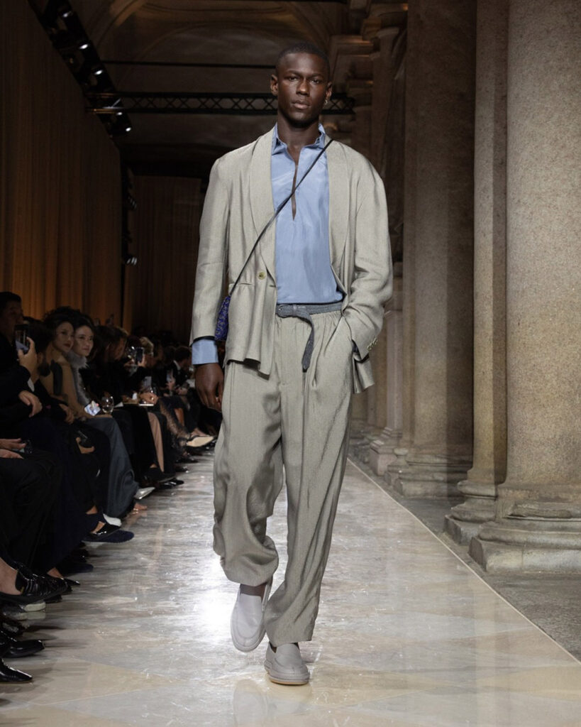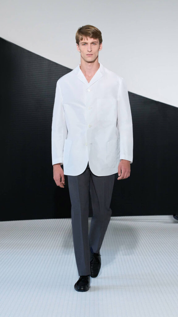 “I’ve always said a good hat, loafer and blazer is all you need – and Loro Piana’s SS26 collection doubled down on that mantra. Tailoring came softened, loafers sharpened the edges, and the hats? A quiet flex. But what really stood out was the layering: shirts under blazers, knits beneath outerwear, jackets under jackets – all styled to feel more lived-in.” – Ruby Stephens, Style, Jewellery and Watches Editor.