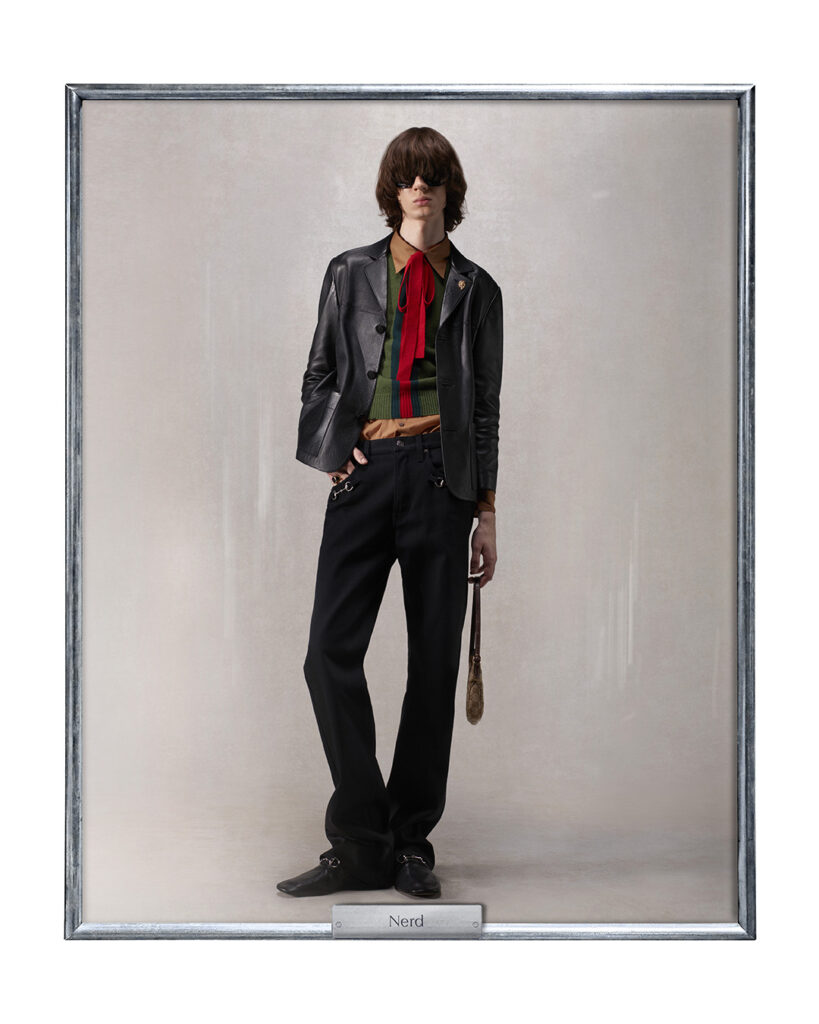 The menswear from the New Gucci was a broad church. There was sex, there was chic. There was gauche and geek: low-slung denim paired with leather jackets, monogrammed velvet ensembles, bows and shrunken knitwear.