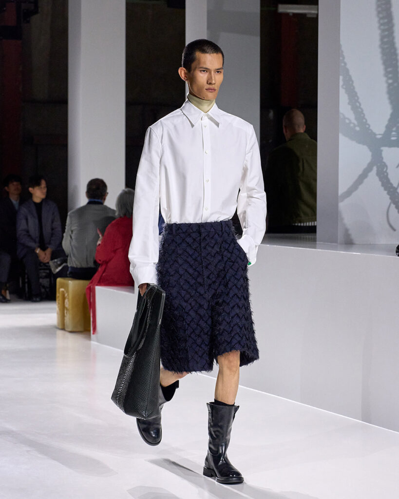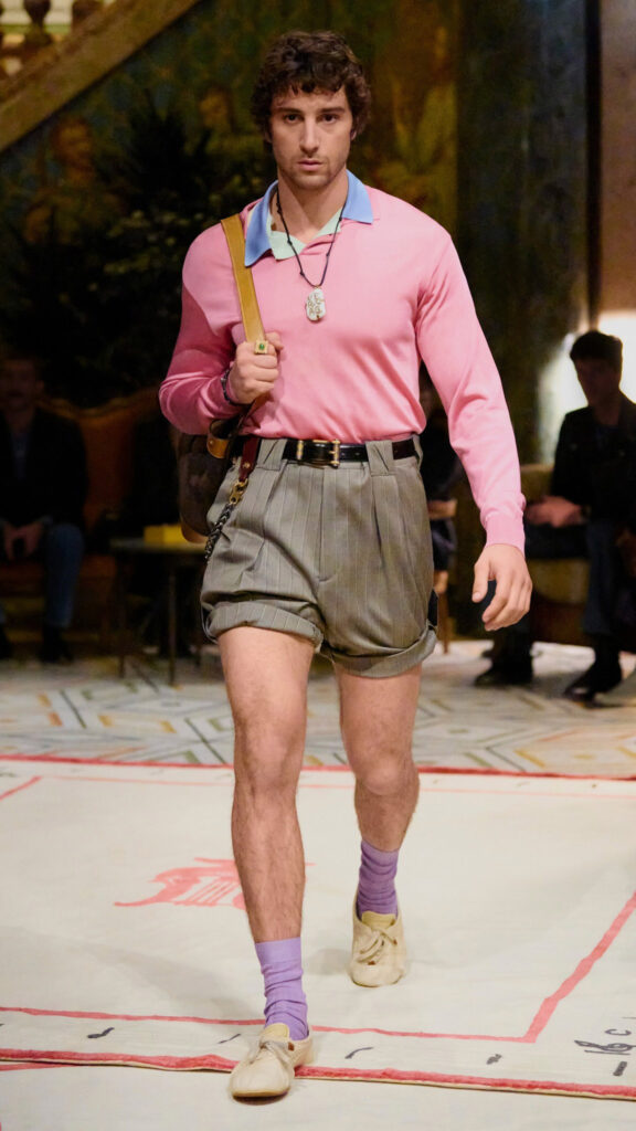 Much was said about the arrival of a “female gaze” to the brand. If this had to be defined, it would be Trotter’s elevated practicality applied to the entire collection. Draping fits that added the sumptuousness of the materials, from shorts and shirting that seemed to hover around the body to louchely hanging suiting that, at the same time, conveyed Italian precision. It was clothes that lived and breathed the energy of the city but had the comfort of the villa, the resort, the escape.