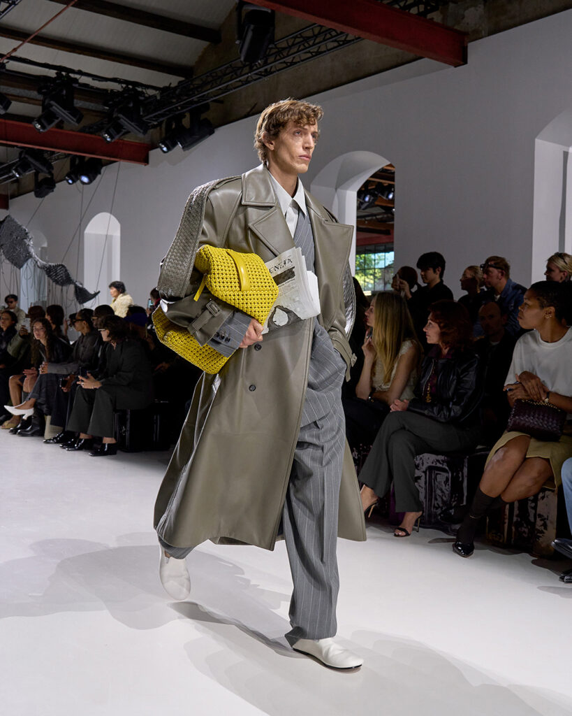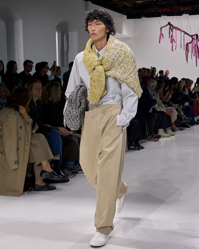 Bottega’s experimentations with leather as a material have been nothing short of magic in the past and Trotter seems to have that same transformative vision, through her own lens. Example a) the knitted sweaters that were made from recycled fibreglass.