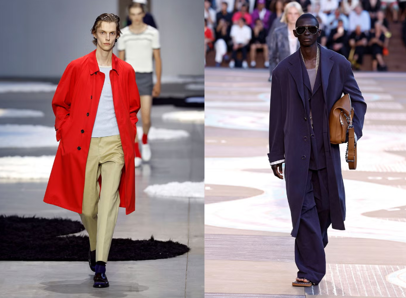 If this season wasn’t a total eclipse of that distinction, Vaccarello is getting pretty close. Just like he did with his last men’s collection, for spring 2024 Vaccarello used his most recent women’s collection as a launchpad of sorts. Unveiled in Berlin, inside German-American architect Ludwig Mies van der Rohe’s modernist masterpiece Neue Nationalgalerie Deep, we saw scooping necklines, silk tops with long, floaty, bridal-esque trains and oversized blazers with eighties-style shoulders carried over from hers to his. But paired with sharp black trousers, they assumed a new, unconventional air of masculine power on the Saint Laurent man.