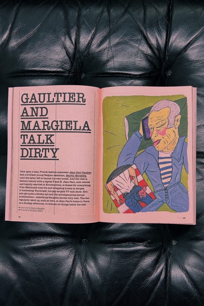 Beloved Dutch magazine, BUTT, is back with a 120-page issue filled with a fashion nerd’s must-reads: dirty talk with the reclusive Martin Margiela and Jean Paul Gaultier, photography by the iconic Nan Goldin, an interview with Omar Apollo (or “Tall Papi” . . . IYKYK), and more queer NSFW features and photo studies. On the back page, Italian house Bottega Veneta was a key sponsor, placing their new campaign featuring a suggestively trussed Intrecciato glove. – Tyler Dane Wingco