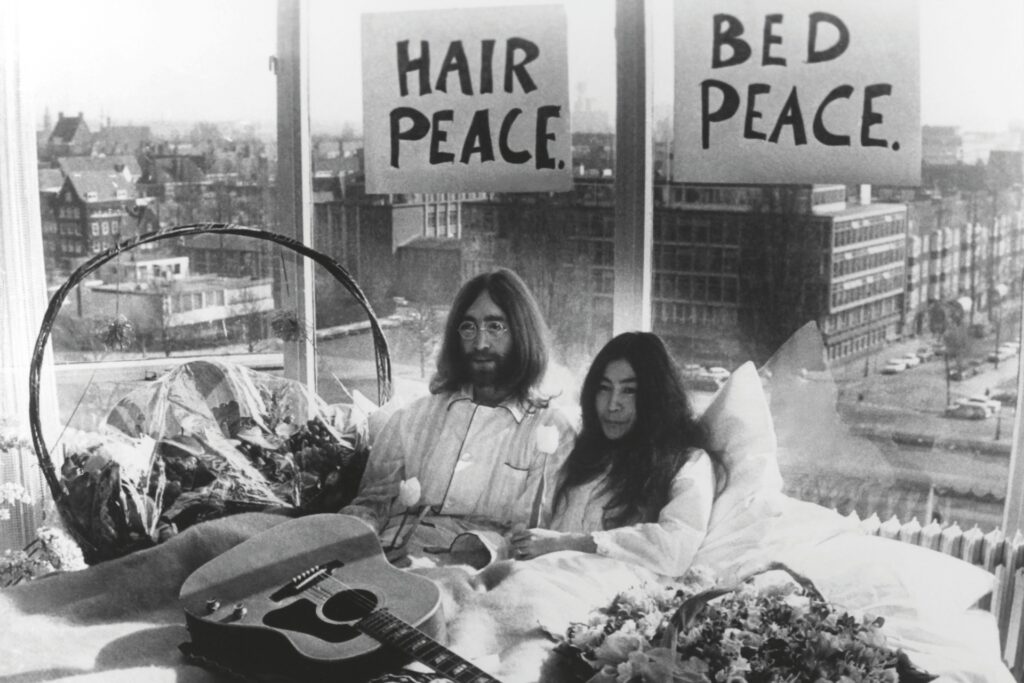 In 2012, eight members of the feminist punk band Pussy Riot mounted a platform in Moscow’s Red Square to perform their song “Putin Zassal” (“Putin Has Pissed Himself”) in the wake of anti-Putin rallies. And in 1969, John Lennon and Yoko Ono invited the world’s media into their Amsterdam honeymoon suite for a weeklong “Bed-in for Peace”, protesting the Vietnam War by, as the name suggests, refusing to get out of bed. These acts – solemn, absurd, iconic, anonymous – aren’t mirrors in scale or shape. But they’re bound by an instinct: a desire to be seen and heard. A calling to protest.